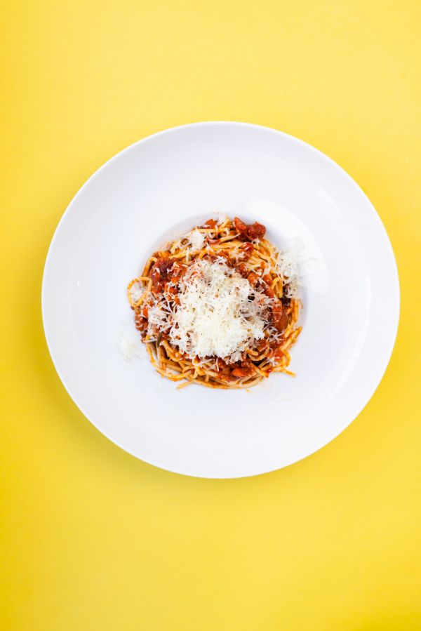 300g Kuřecí rizoto s řapíkatým celerem a hráškem, sypané sýrem, rajčatový salát