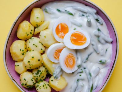 Smažená uzená gouda, vařené brambory, tatarská omáčka 1, 3, 7, 10