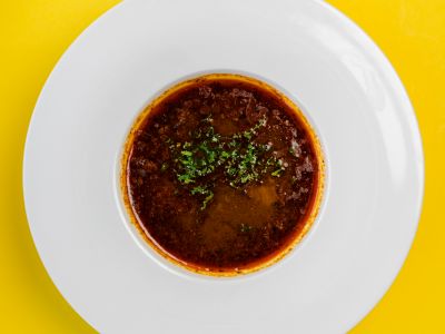 Polévka: Hovězí vývar s masem a nudlemi (1,3,6,7,9)