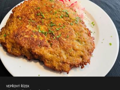 150 g Smažený vepřový/kuřecí řízek, bramborový salát, citrón 1, 3, 7, 9, 10, 12