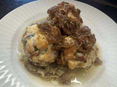 A Pečené kachní stehno s dušeným kysaným zelím, bramborový knedlík 137