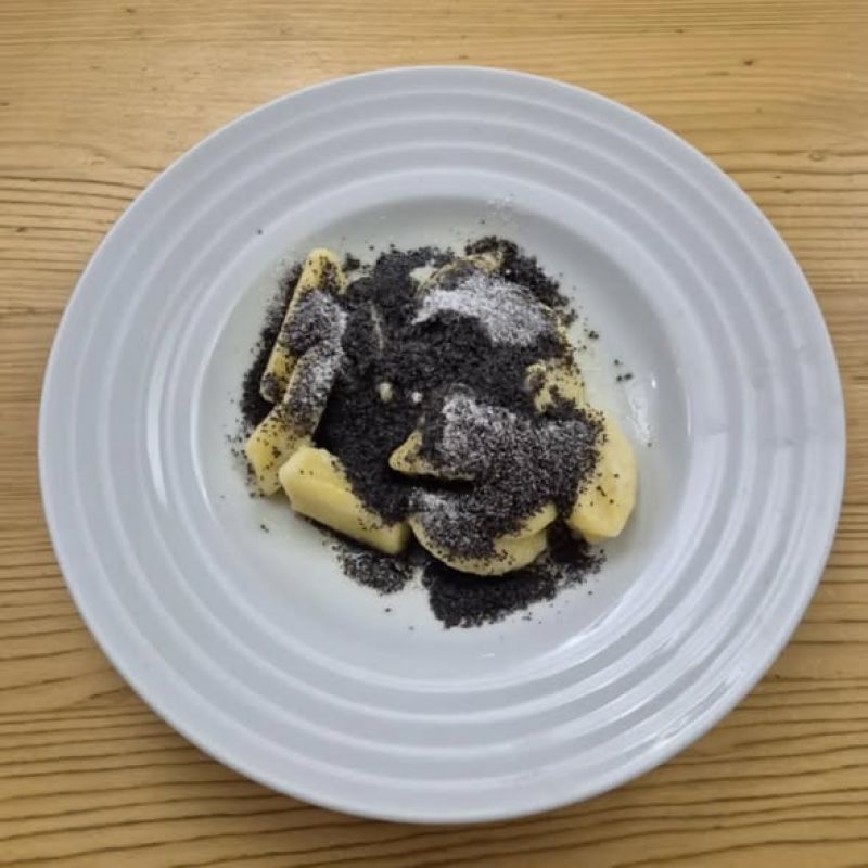 170g Kynutý knedlík plněný povidly s mletým mákem a vanilkovým krémem