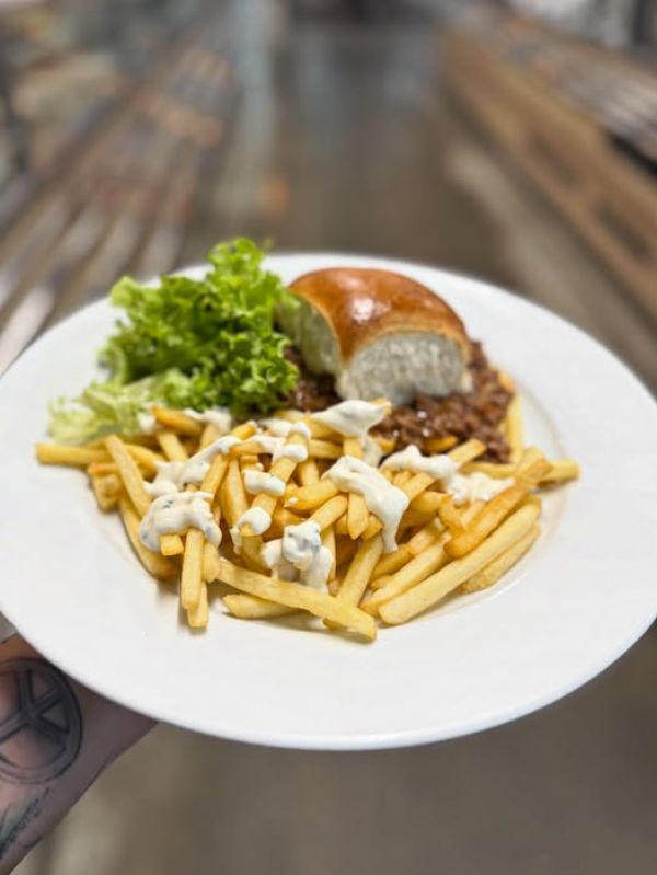 Anglický roastbeef, steakové hranolky, tatarská omáčka