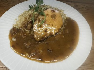 Gnocchi s omáčkou z pravých hřibů, grilovaná vepřová panenka