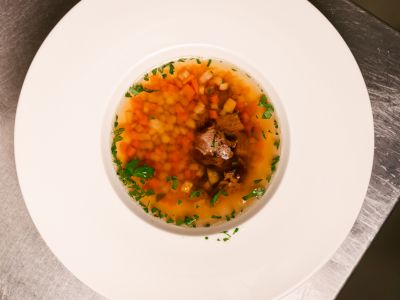 Hovězí vývar s masem, zeleninou a nudlemi (1, 3, 7, 9)