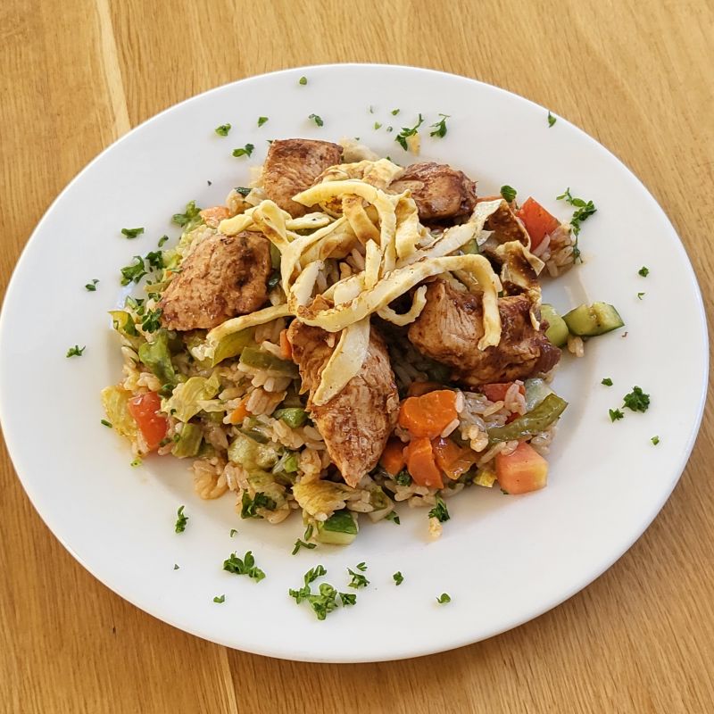 150g Kuřecí steak se šalotkovou Demi-glace, jasmínová rýže 1910
