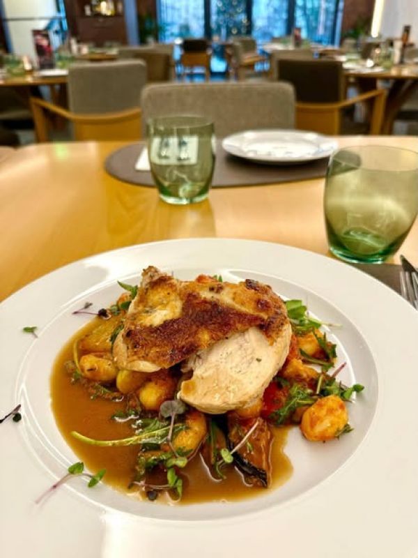 120g Filovaná vepřová panenka, gnocchi se smetanou a loupanými rajčaty, Parmezán A,1,3,7,9,12