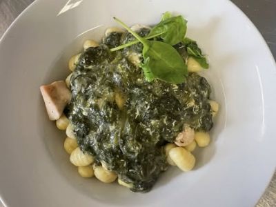 350g Špenátové gnocchi s kuřecím masem (1,3,7) …