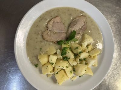 Menu 3: Vepřové maso v lahodné kmínové omáčce, testoviny 1,3