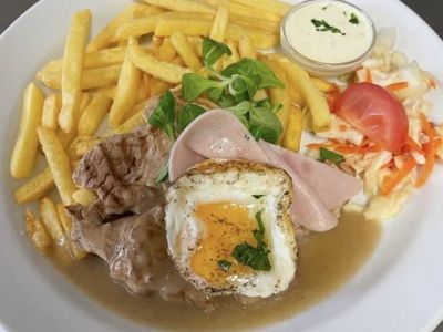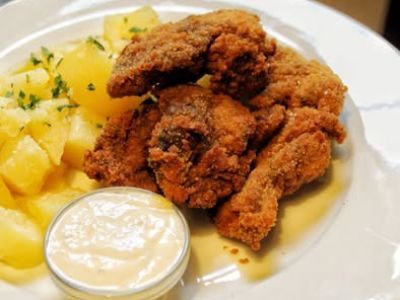Hovězí Porthaus (smažená roštěná s česnekem), bramborový salát s majonézouA: 13710