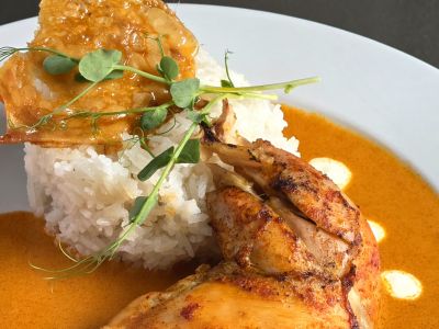 250g Pečené kuřecí stehno na divoko, jasmínová rýže