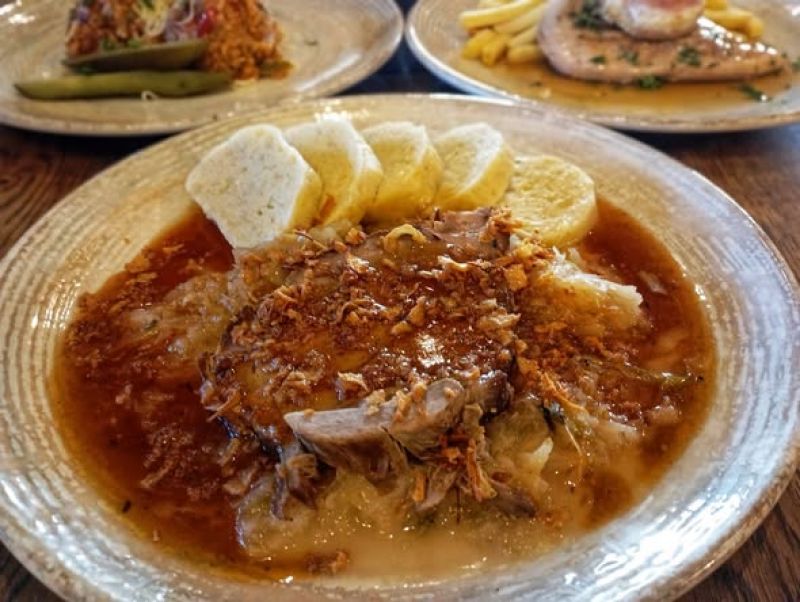 Pečená krkovička, kysané zelí, bramborový knedlík
