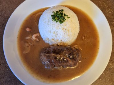 Sekaná svíčková, houskový knedlík