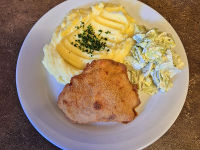 Vepřový řízek, bramborový salát