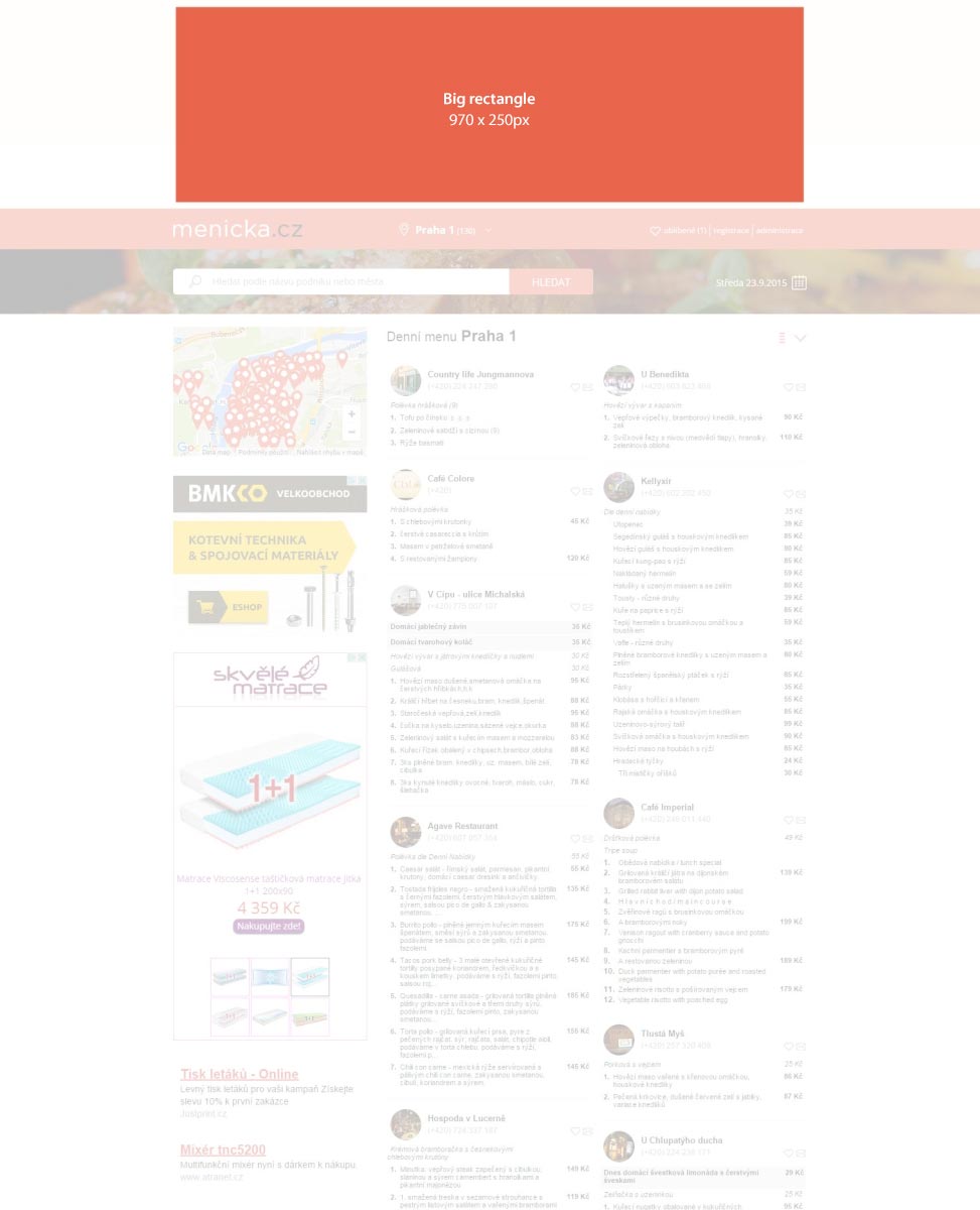 | Big rectangle | celý web | 970×250 px | 250 000 | ukázka |