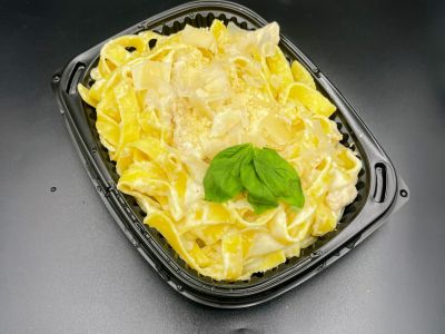 150g Kuřecí nudličky v sýrové omáčce, bramboráčky 137