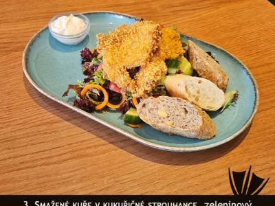 smažený kuřecí řízek, domácí bramborový salát (1,3,9,10)