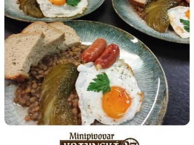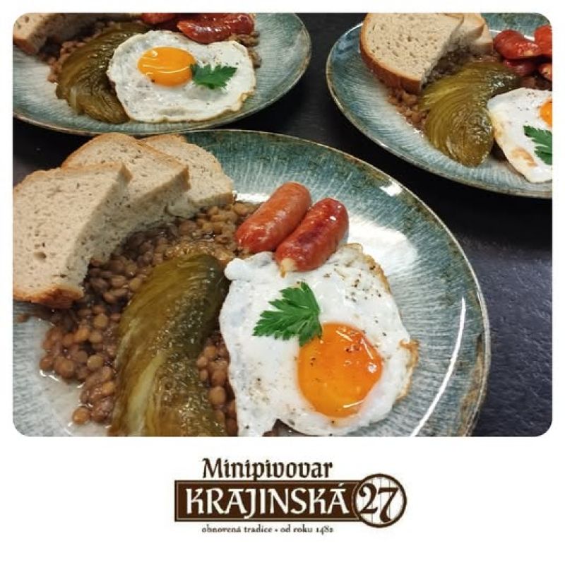 ZVÝHODNĚNÉ MENU 2: Hovězí vývar se zeleninou a játrovou rýží + Tradiční hospodský katův šleh z vepřového masa, bramboráčky