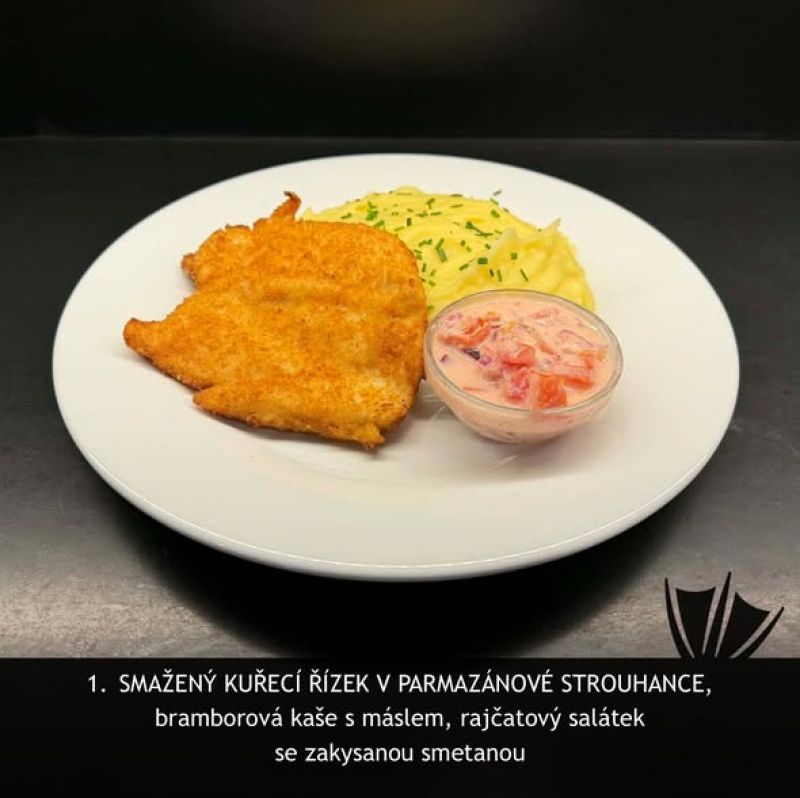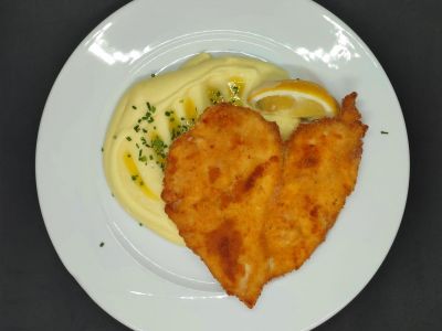 Smažený kuřecí řízek s máslovým bramborem nebo bramborovým salátem