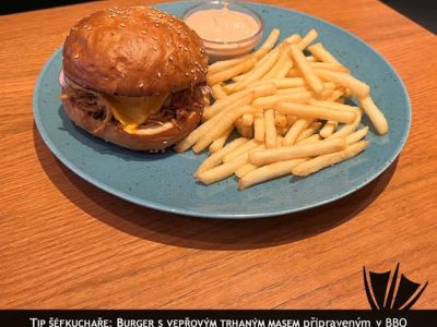 Extra - Hovězí cheese burger, hranolky