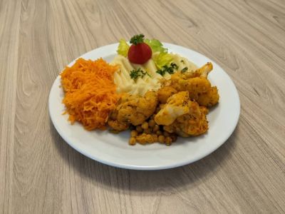 150 g Holandský řízek se sýrem, bramborová kaše, salát z kysaného zelí 137