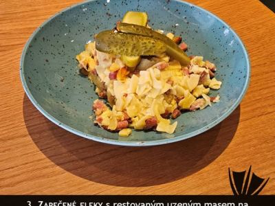 Hascheeknödel – Plněné bram. knedlíky uzeným, gulášová šťáva, zelí