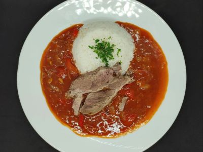 Dušená vepřová játra na cibulce, jasmínová rýže