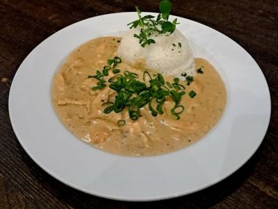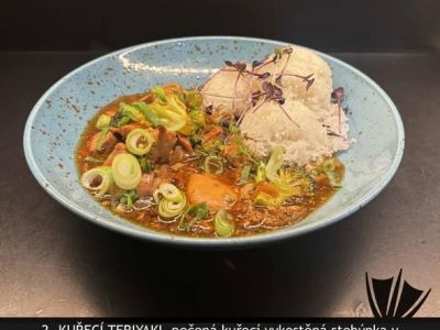 2. 150 g Filírovaný kuřecí steak s dýňovou omáčkou, bramborové noky (A:1,3,7,9)