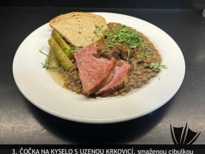 150g Uzené maso, bramborová kaše, kyselá okurka 137