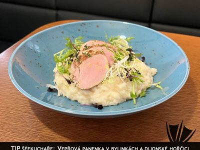 PEČENÁ UZENÁ KRKOVICE S BRAMBOROVOU KAŠÍ