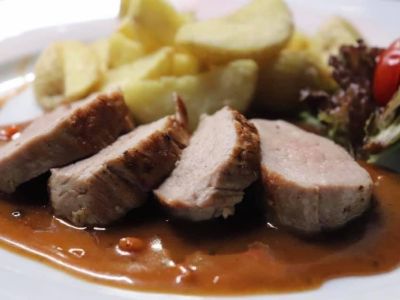 100g Smažený vepřový řízek, hranolky, tatarka 137
