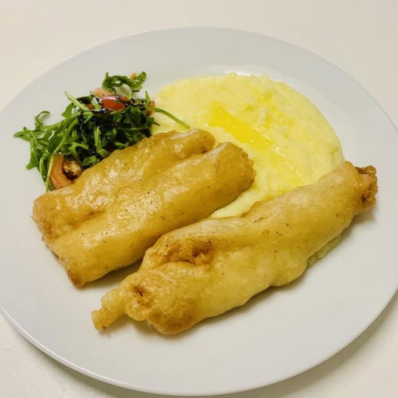 150g Grilovaná panenka, fazolky na slanině, krokety