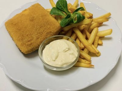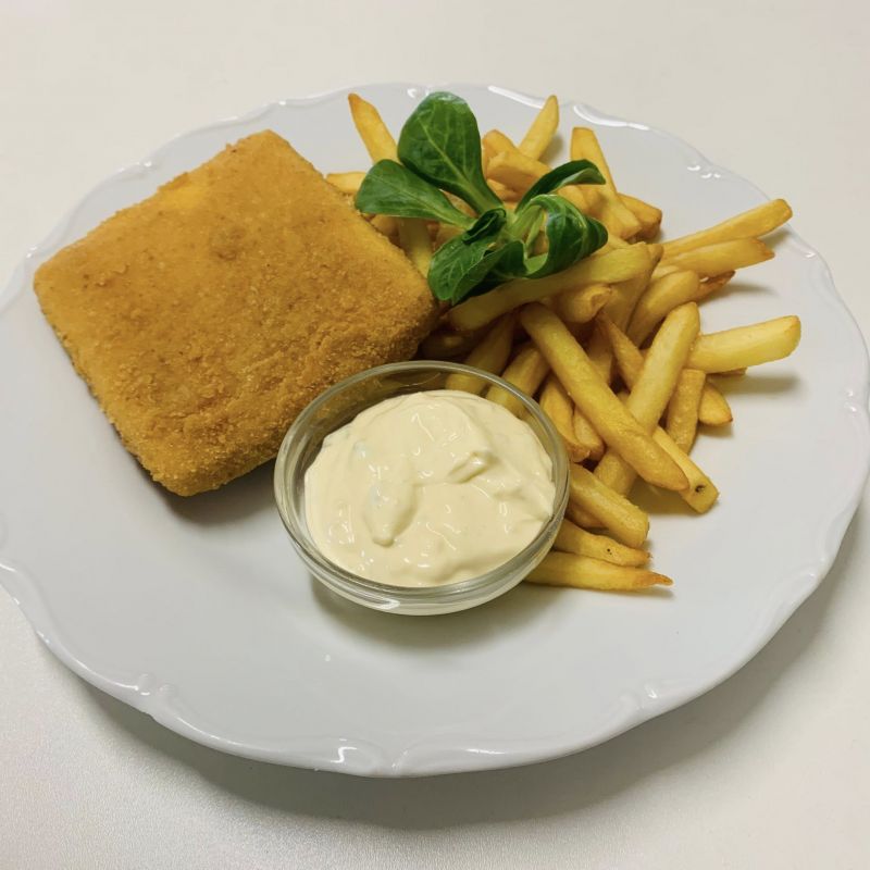 150g Smažený hermelín se šunkou, brambor, tatarka