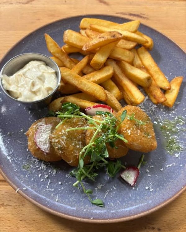 180g Smažený hermelín, hranolky, domácí tatarská omáčka 1, 3, 6, 7, 9, 10