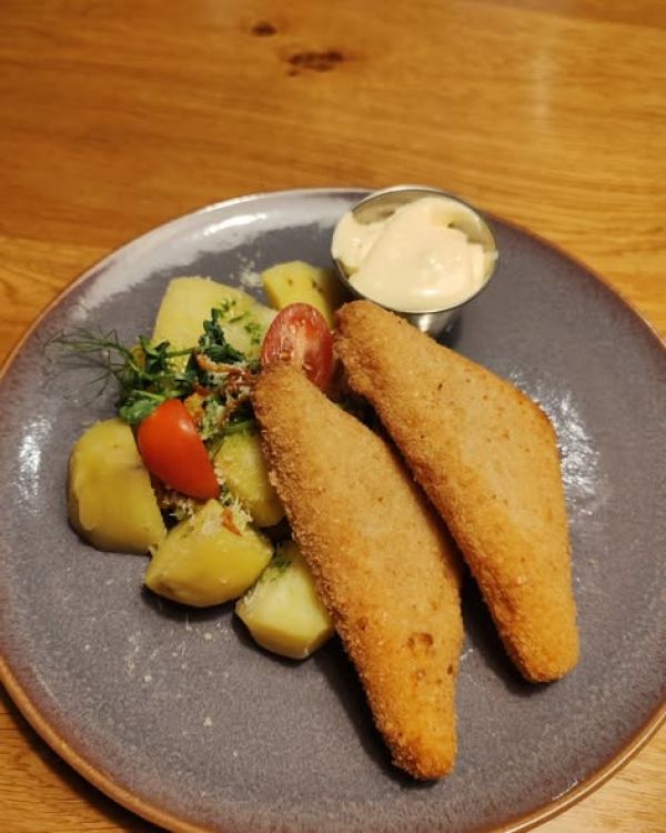 120g Smažený hermelín, vařené brambory, tatarská omáčka