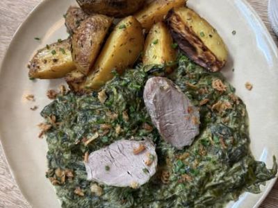 Gnocchi se smetanovým špenátem a vepřovou panenkou