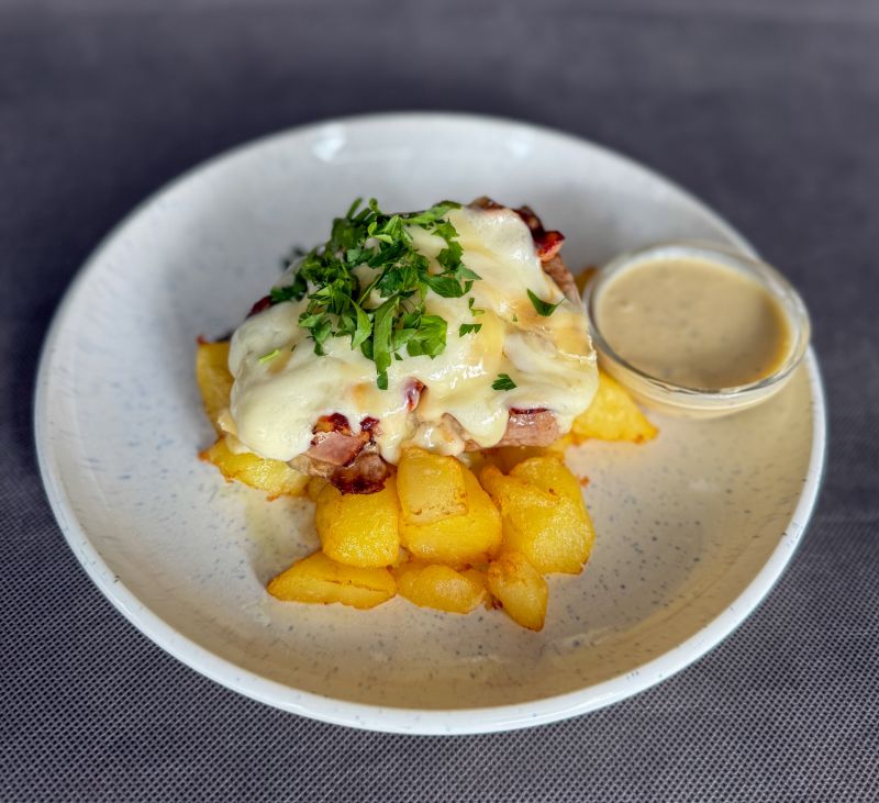 150g Grilované medailonky z vepřové panenky, grilovaná zelenina, smažené hranolky