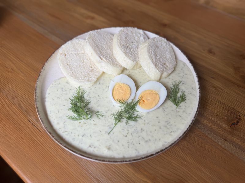 3ks vařené vejce, koprová omáčka, vařené brambory A 1, 3, 7