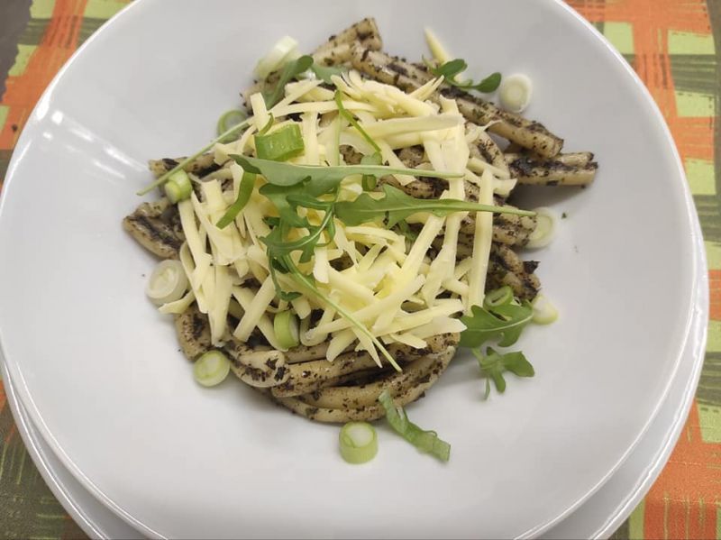 Špagety "Alfredo" (kuřecí maso, smetanová omáčka, it. sýr)