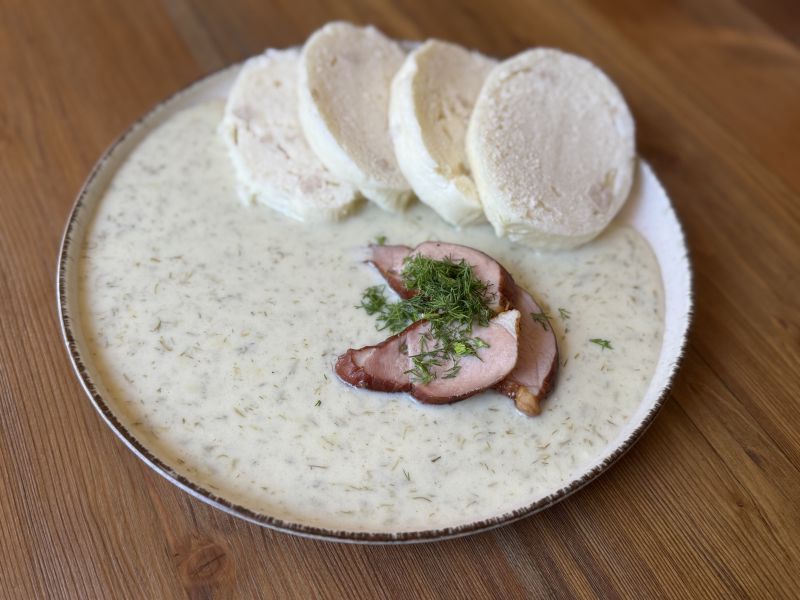 N. O. V. I. N. K. A - Halušky se zelím a uzeným + polévka