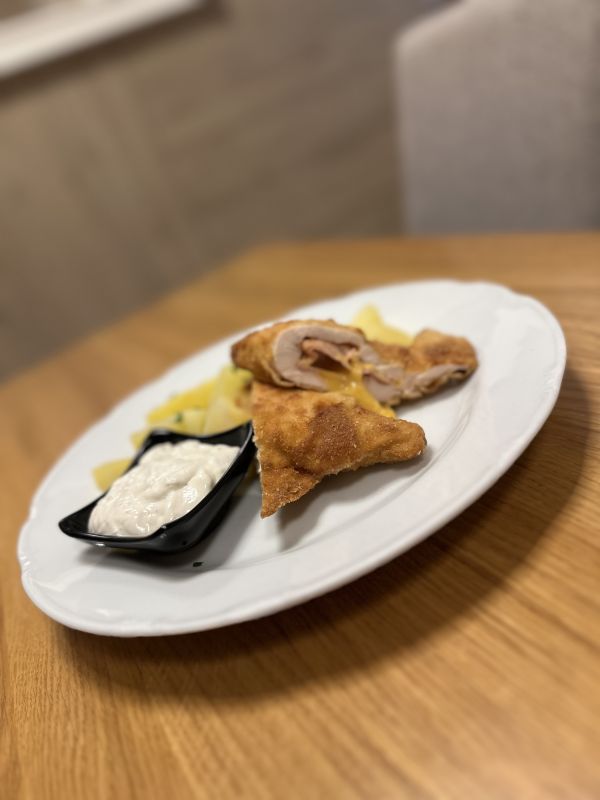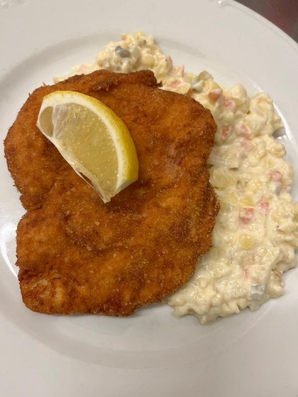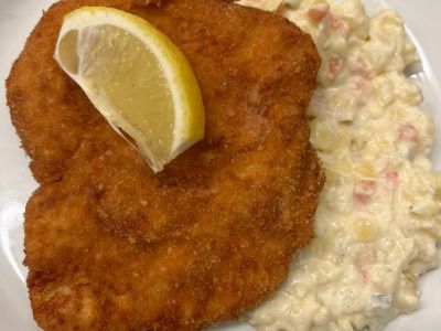 Smažený kuřecí řízek, bramborový salát s majonézou 137910