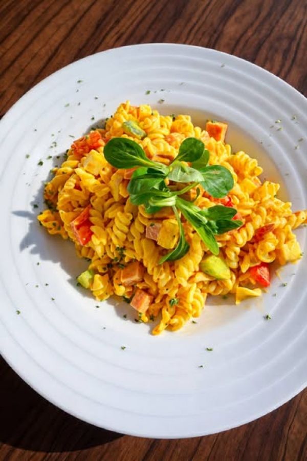 Těstoviny s krémovou omáčkou a kousky pečeného lososa 1, 4, 7