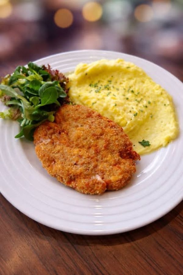 100 Smažený kuřecí řízek, bramborová kaše 137