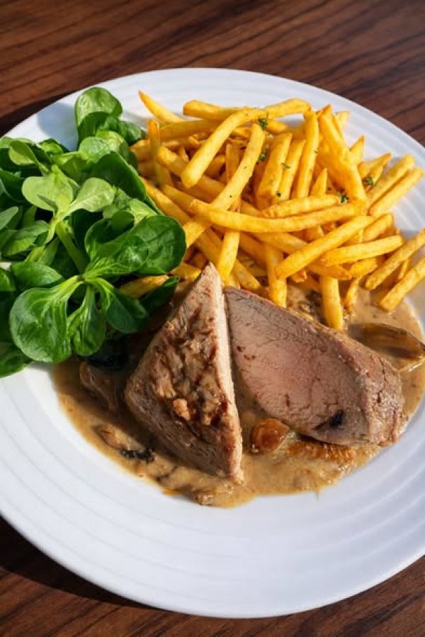 Kuřecí Gordon Blue, hranolky, tatarka