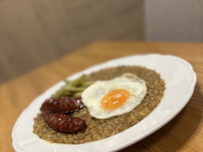 150g Kuřecí prsa s klobásou a cibulí, jasmínová rýže 1710