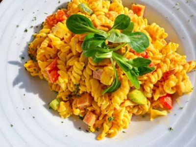 Těstovinový salát se sušenými rajčaty a hermelínem