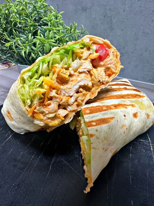 Jemně pikantní kuřecí směs se zeleninou, steakové hranolky