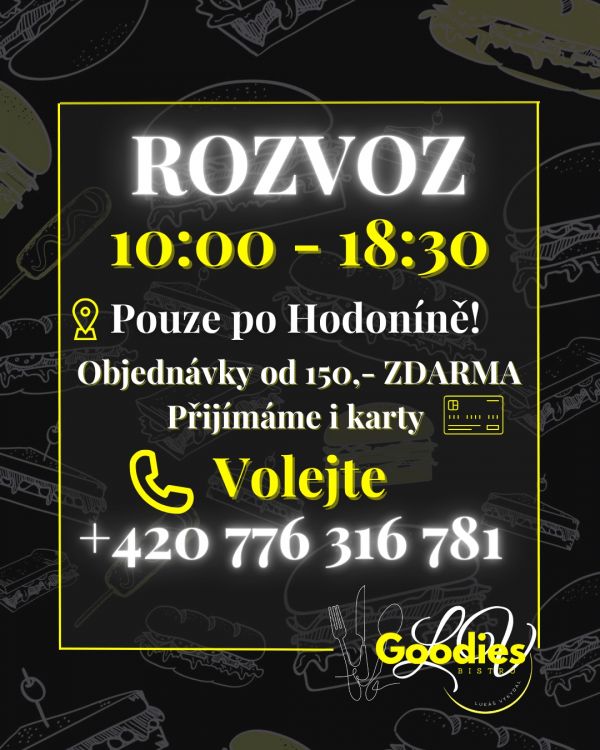 Objednávky přijímáme telefonicky 10:00-13:00, při objednávce do 300kč, 20kč za rozvoz
