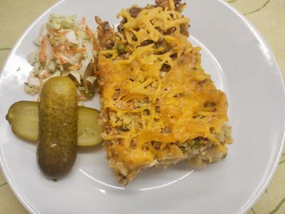 PŘÍRODNÍ KAPSA plněná tvarůžkem s dušenou rýží, okurek al. 1, 7, 9, 10