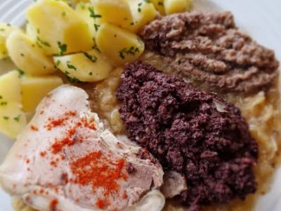 Pečené bavorské koleno s červeným zelím na špeku a kynutým knedlíkem 137